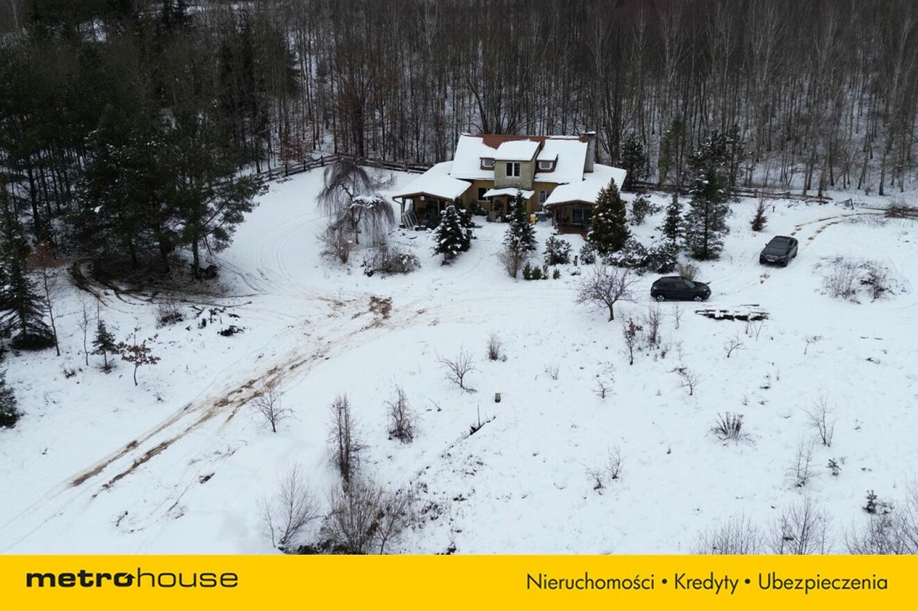 Wolnostojący dom położony jest na działce o pow. 3010 m2, w miejscowości Żabi Róg, gmina Morąg. Żabi Róg to przepięknie położona wieś turystyczna, w bliskim sąsiedztwie takich miejscowości jak: Kretowiny, Bogaczewo czy Gubity.Dom został zbudowany w 2003 r. i jest do odświeżenia. Jest to budynek parterowy z mieszkalnym poddaszem. Na parterze znajduje się przestronny salon z jadalnią i aneksem kuchennym, z którego jest wyjście na zadaszony taras, łazienka z prysznicem i miejscem do prania oraz przygotowane jest pomieszczenie pod saunę wraz z wyposażeniem. Usytuowany jest tu również pokój z łazienką, z którego jest wyjście na drugi zadaszony taras. W pokoju wymurowana jest tradycyjna kuchnia kaflowa. Na poddasze prowadzą drewniane schody. Znajdują się tu 3 pokoje i łazienka. Jeden z pokoi ma oddzielną toaletę. W zimie ciepła dostarcza super nowoczesny i oszczędny piec na ekogroszek/pellet. Alternatywnie może być ogrzewanie podłogowe, które jest na parterze i kominek znajdujący się w salonie. Woda jest z własnego ujęcia oraz z rurociągu. Niewątpliwym atutem nieruchomości jest jej położenie, z pięknymi widokami na las i jezioro. Idealna propozycja dla ludzi ceniących spokój i ciszę, którzy szukają nowoczesnego i całorocznego domu. Nieruchomość ma dostęp do wspólnej plaży. Na sprzedaż są jeszcze 3 działki z linią brzegową jeziora.